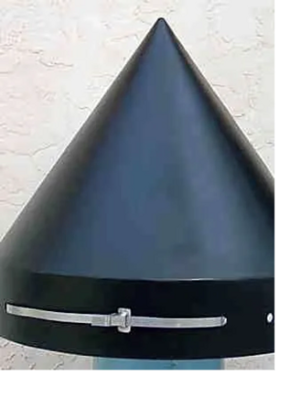 Zena Cones mount on wooden, steel or composite poles in minutes, using stainless steel straps or bolts. Molded from proprietary high-density long-life polyethylene, the cone delivers economical and effective protection from birds and the weather.